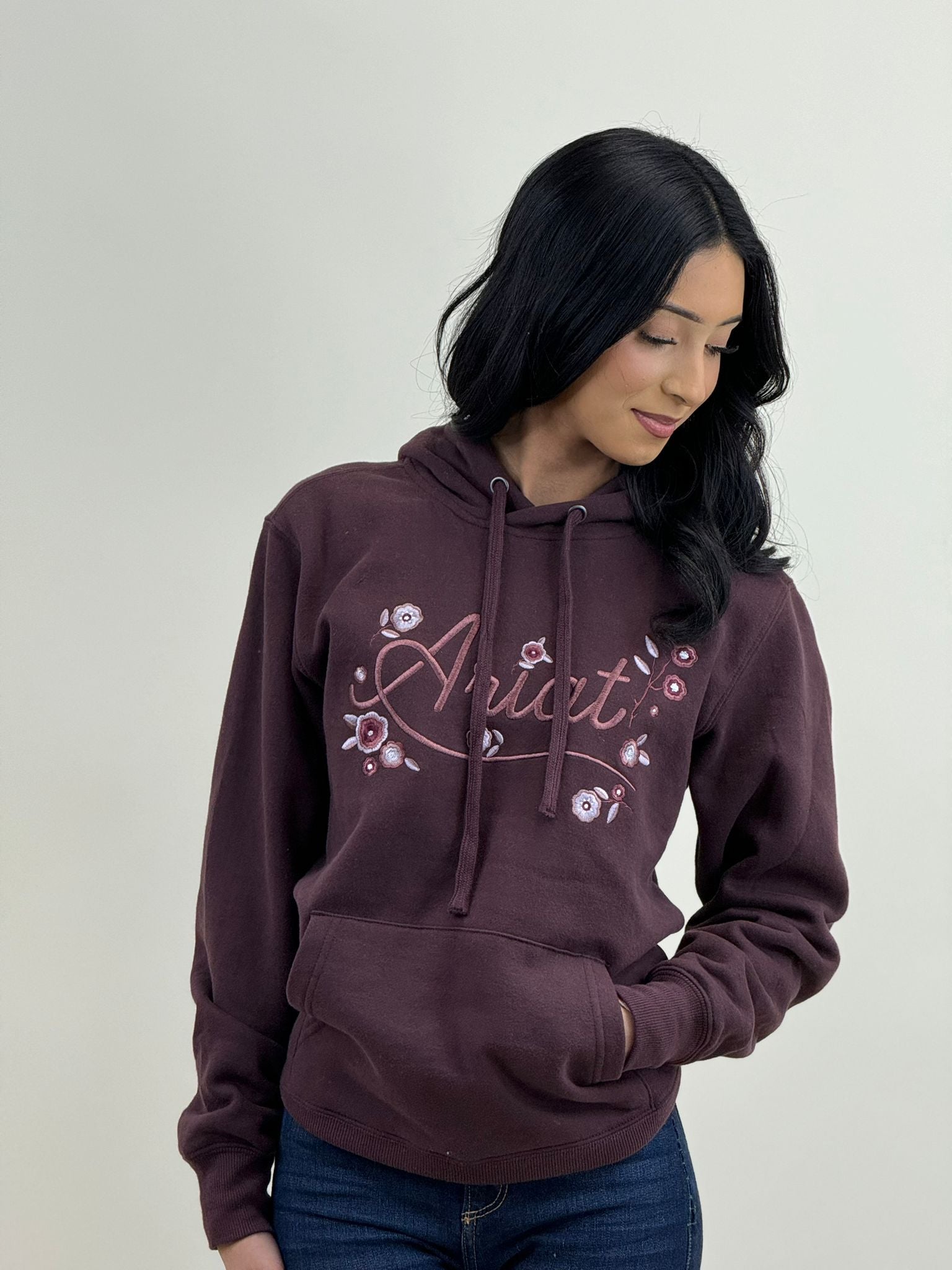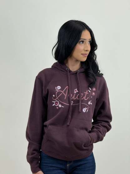 ARIAT WOMENS STORIES CLOVE BROWN W/ FLOWERS HOODIE